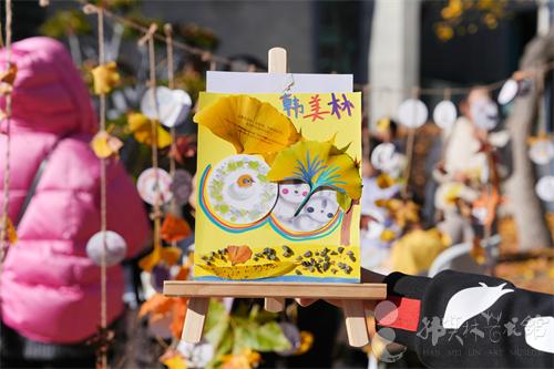 活动刚刚开始,就有不少家长牵着小朋友陆续到来。小朋友们手里紧紧攥着提前捡好的“宝贝落叶”,有的细心装在密封袋中,有的收进心爱的小玩具桶里。工作人员耐心讲解落叶风铃与秋日色卡的制作方法,还特别准备了韩美林的十二生肖卡片,让大家装点在自己的作品上,为这份秋日手作增添一抹独特的“美林韵味”。在工作人员细致的引导下,大家纷纷沉浸在手作的快乐里。现场很快便充满了孩子们的欢声笑语,与创作的细微声响交织在一起。