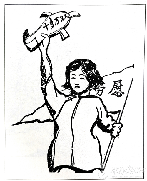 例如1933年的《把红旗插满中国》,简练的线条勾勒出红军的雄心壮志与必胜的信念。