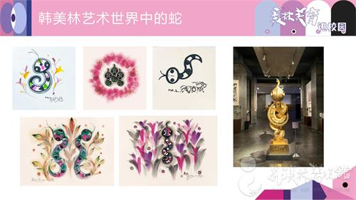 课堂还特别展示了韩美林先生笔下的蛇形象。这些作品充满童趣与温情:有的憨态可掬、眼神灵动;有的色彩明丽,富有装饰趣味;有的则以简练线条勾勒现代美感,彻底打破了人们对蛇的固有印象。