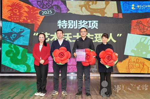 ▲韩美林艺术基金会秘书长徐了然(左一)为艺术馆员工颁发“主理人联盟”先进集体奖
