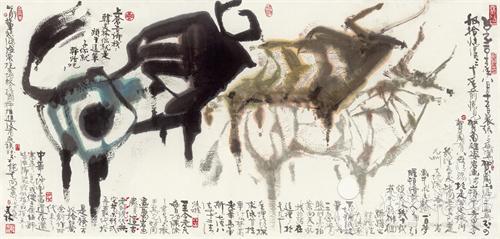 20世纪80年代,艺术家韩美林第一次来到贺兰山,便被古老神秘的贺兰山岩画深深打动,此后他又多次来到这里,观摩和记录岩画,汲取创作灵感。丰富多彩的贺兰山岩画成为了他艺术创作的庞大素材库,促成了其后期艺术风格的转变,对其艺术思想的发展成熟有着重要的作用。