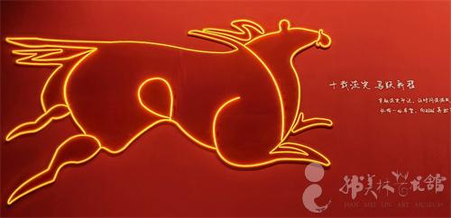 本次“骐骥一跃 艺途拾纪”银川韩美林艺术馆十周年再出发暨2026丙午生肖特展,以生肖“马”为脉络,精心呈现了百余件韩美林绘画、雕塑作品及岩画刻石、拓片,构建了一场跨越时空的对话,通过贺兰山岩画中古朴苍劲的马形象,与韩美林笔下洒脱奔放的“美林马”连线对话,展现远古岩画在当代艺术创作中焕发出跨越时空的艺术光芒,开辟出一条融汇远古艺术与现代审美的创新之路。