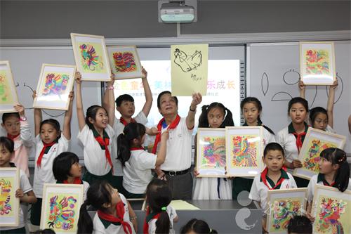 ▲韩美林在北京市通州区育才学校“美林教室”为小学生们上课