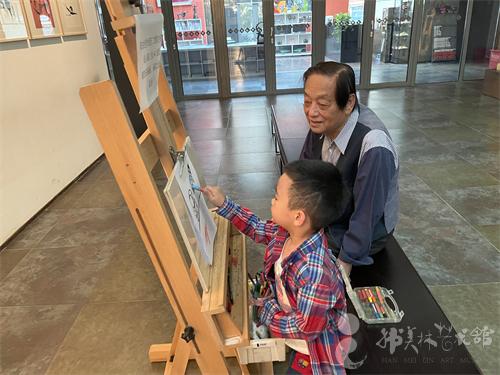 ▲爸爸看着儿子画画