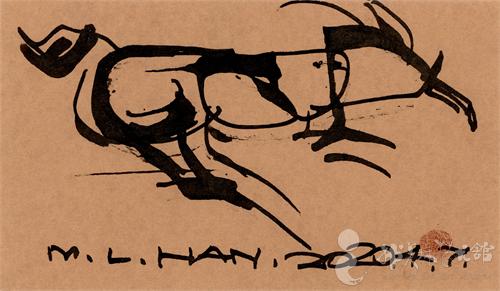 “神骏卓凡”是对韩美林艺术中线条与墨彩的纯粹致敬。从书法金石中淬炼精髓的笔线,往往只是寥寥数笔,马的骨相、肌理、色彩与奔腾情态便跃然纸上,而线条的节奏起落承载千钧之力又舞出万千气象,尽显艺术家“以简驭繁、笔尽意无穷”的至高境界,更张扬出生命的呼吸与律动。