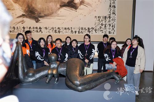 ▲“春耕计划”的老师们参观北京韩美林艺术馆,在韩美林的《母与子》作品前驻足停留