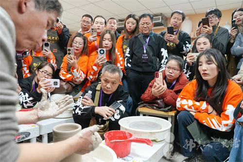 ▲景德镇陶瓷大学教授钞子伟为“春耕计划”的老师们讲解介绍泥塑工艺背景、制作技巧和工具使用等知识