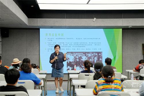 为丰富市民精神文化生活、满足多元学习需求,北京韩美林艺术馆于2025年9月13日下午2点,在北展区公教厅成功举办了“北京周末社区大讲堂”活动。本次活动特邀中华全国世界语协会理事、天津市世界语协会副秘书长林莉莎老师,作《当中国茶遇见世界语》主题讲座,吸引了全年龄段市民50人踊跃参与。