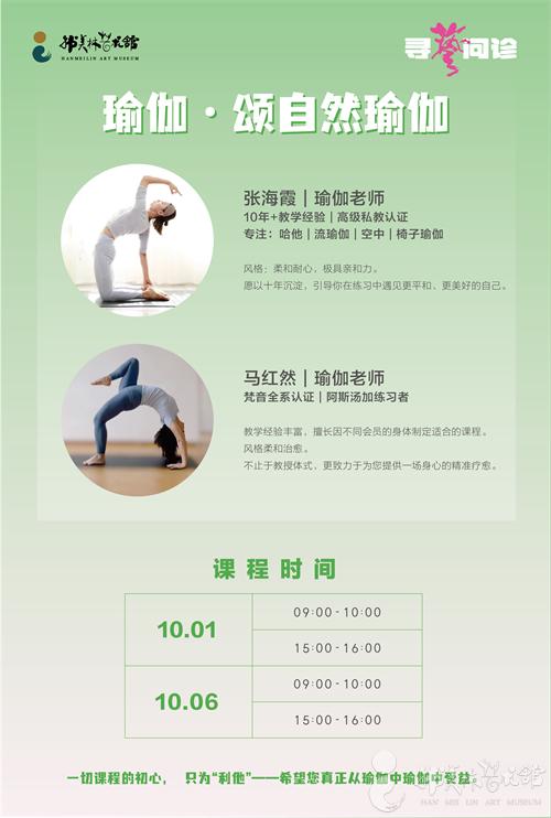 这个金秋,让艺术滋养心灵。北京韩美林艺术馆将于十一假期特别推出「寻艺问诊」系列活动,其中【自然瑜伽】和【疗愈讲座】现正式开放线上报名,邀您开启一场身心对话的奇妙旅程。