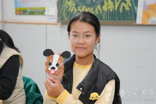 创作环节,孩子们小心翼翼地取出不织布材料,比对、组合、粘贴……一步步将平面想象变为立体创作。有的学生注重造型的对称性,打造规整的小狗形象;有的学生通过调整部件角度,突出小狗的动态感;还有学生添加个性化装饰,赋予作品独特的故事性。