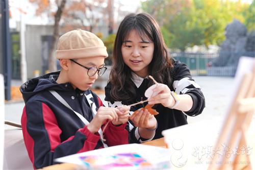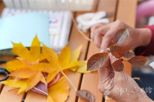 活动刚刚开始,就有不少家长牵着小朋友陆续到来。小朋友们手里紧紧攥着提前捡好的“宝贝落叶”,有的细心装在密封袋中,有的收进心爱的小玩具桶里。工作人员耐心讲解落叶风铃与秋日色卡的制作方法,还特别准备了韩美林的十二生肖卡片,让大家装点在自己的作品上,为这份秋日手作增添一抹独特的“美林韵味”。在工作人员细致的引导下,大家纷纷沉浸在手作的快乐里。现场很快便充满了孩子们的欢声笑语,与创作的细微声响交织在一起。