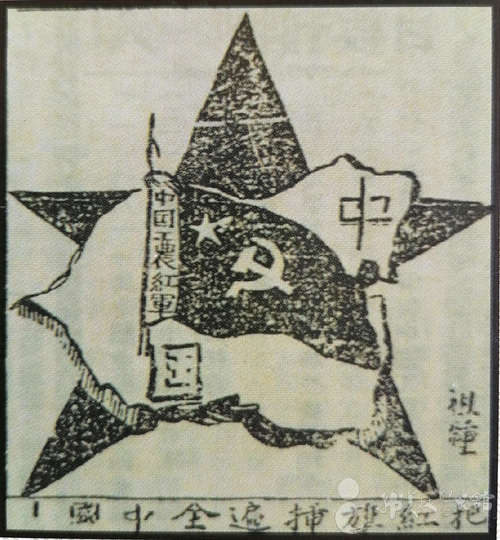例如1933年的《把红旗插满中国》,简练的线条勾勒出红军的雄心壮志与必胜的信念。