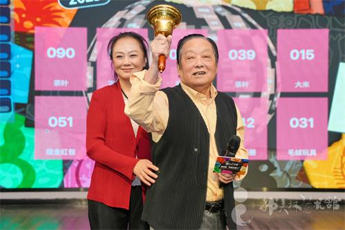 ▲艺术家韩美林与韩美林艺术基金会理事长、五地韩美林艺术馆总馆长周建萍为五馆员工送上温暖的新年祝福