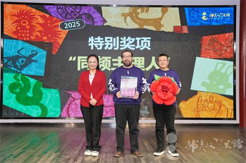 ▲韩美林艺术基金会秘书长徐了然(左一)为艺术馆员工颁发“主理人联盟”先进集体奖