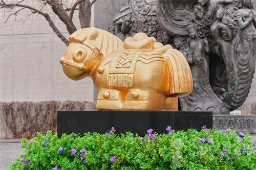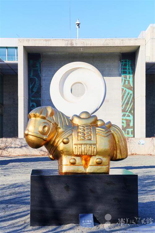 冬日的暖阳下,北京韩美林艺术馆广场悄然迎来了一位金灿灿、圆滚滚的新伙伴。艺术家韩美林为迎接即将到来的丙午马年,特意创作了这尊名为《玉堂金马》的青铜贴金雕塑。它正以一身闪耀的温暖金光和憨态可掬的造型,眨着灵动的大眼睛,迎接每一位访客。
