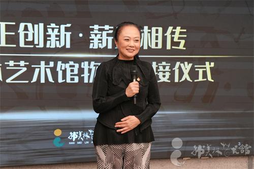 ▲五地韩美林艺术馆总馆长周建萍出席仪式并讲话