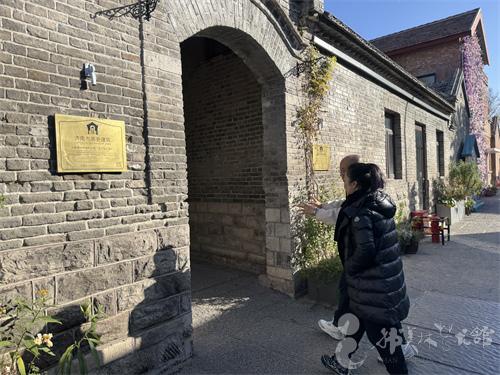 在街道的一处普通民居的外墙上,就是本次党建的“目的地”。墙体由大块的青石和红砖砌成,岁月的风雨已将其冲刷得斑驳。然而,就在这面墙上,几处清晰可辨的凹坑赫然在目——那是1948年济南战役留下的弹痕。