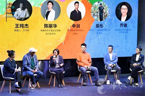 在随后的“艺术与公益”圆桌对谈环节,北京当代艺术基金会理事长崔峤主持,韩美林艺术基金会执行秘书长陈丽华,与策展人、艺术家王纯杰,亿角鲸海洋研究中心创始人申剑,深圳市一个地球世界自然基金会秘书长裴彤,伊利集团可持续和社会价值副总裁乔璐等嘉宾展开了深入交流。