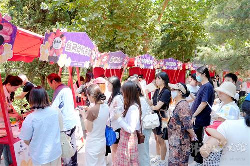 艺术馆还推出了“韩美林艺术体验市集”,多个体验摊位汇集潮流打卡、动手DIY、非遗特色、经典IP等众多艺术元素,各类手工体验与艺术创作活动让游客们驻足流连。集艺术创作、互动体验、参观打卡于一体的城市美育市集活动,通过韩美林多种艺术门类经典作品的形象赋能,让艺术走进生活,让市集与文化共生。