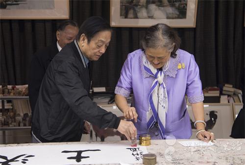 ▲诗琳通公主与韩美林共同创作书法《扎根沃土》