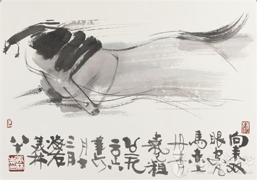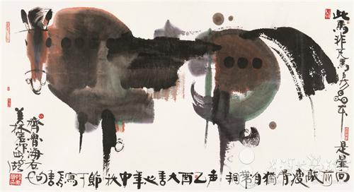 ▲大宛二马图 126x525cm 纸本水墨设色 2016