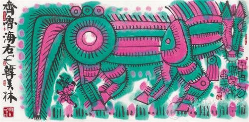 ▲韩美林为冯骥才八十岁生日创作的八十匹马