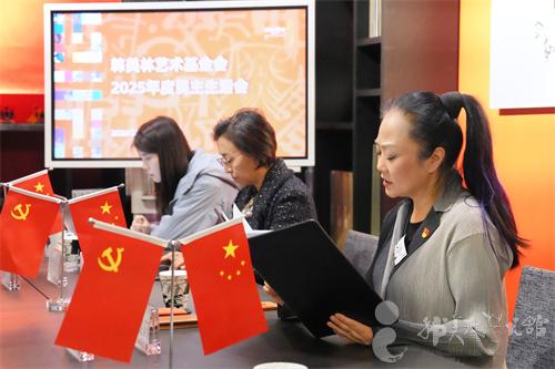 为深入学习贯彻习近平新时代中国特色社会主义思想,全面贯彻落实党的二十届四中全会精神,锲而不舍落实中央八项规定精神,推进作风建设常态化长效化,根据文化和旅游部直属机关党委统一部署,韩美林艺术基金会党支部于近日先后召开了2025年度民主生活会和组织生活会。文化和旅游部党建工作第六组指导员谢金英同志到会指导。韩美林艺术基金会理事长兼党支部书记周建萍主持会议。