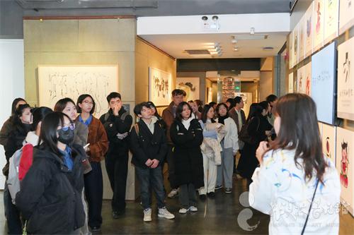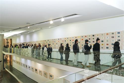 漫步于数千件艺术作品间,学生们仔细聆听讲解员的介绍,时而驻足凝视,时而低声交流。从气势磅礴的雕塑,到灵动飘逸的书法;从充满童趣的绘画,到匠心独运的设计,每一件作品都在诉说韩美林对生活、对自然、对世界的哲思与表达。