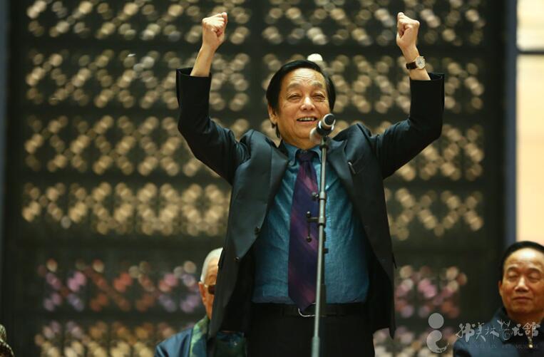 韩美林深情表示“社会文明进步的一个标志,是致敬‘德高望重’,是推崇‘尊师重教’,是弘扬‘感恩的心’。否则,就是不知天高地厚。我请周先生为展览宣布开幕,就是表达了这样的意思。”