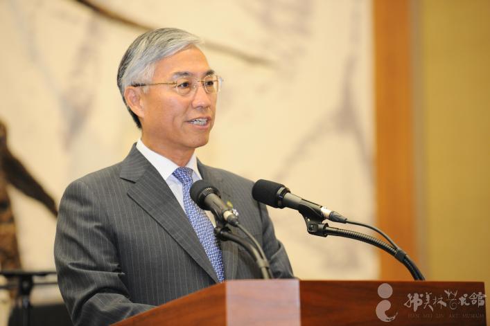 2016年10月28日,韩美林在“美林的世界在威尼斯·韩美林全球巡展”开幕式上发言