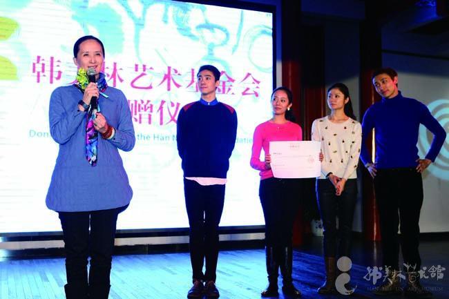 在2015“韩美林日”活动现场,全国政协常委、中国文联副主席覃志刚代表韩美林艺术基金会,给中央芭蕾舞团捐赠仪式颁发捐赠证书